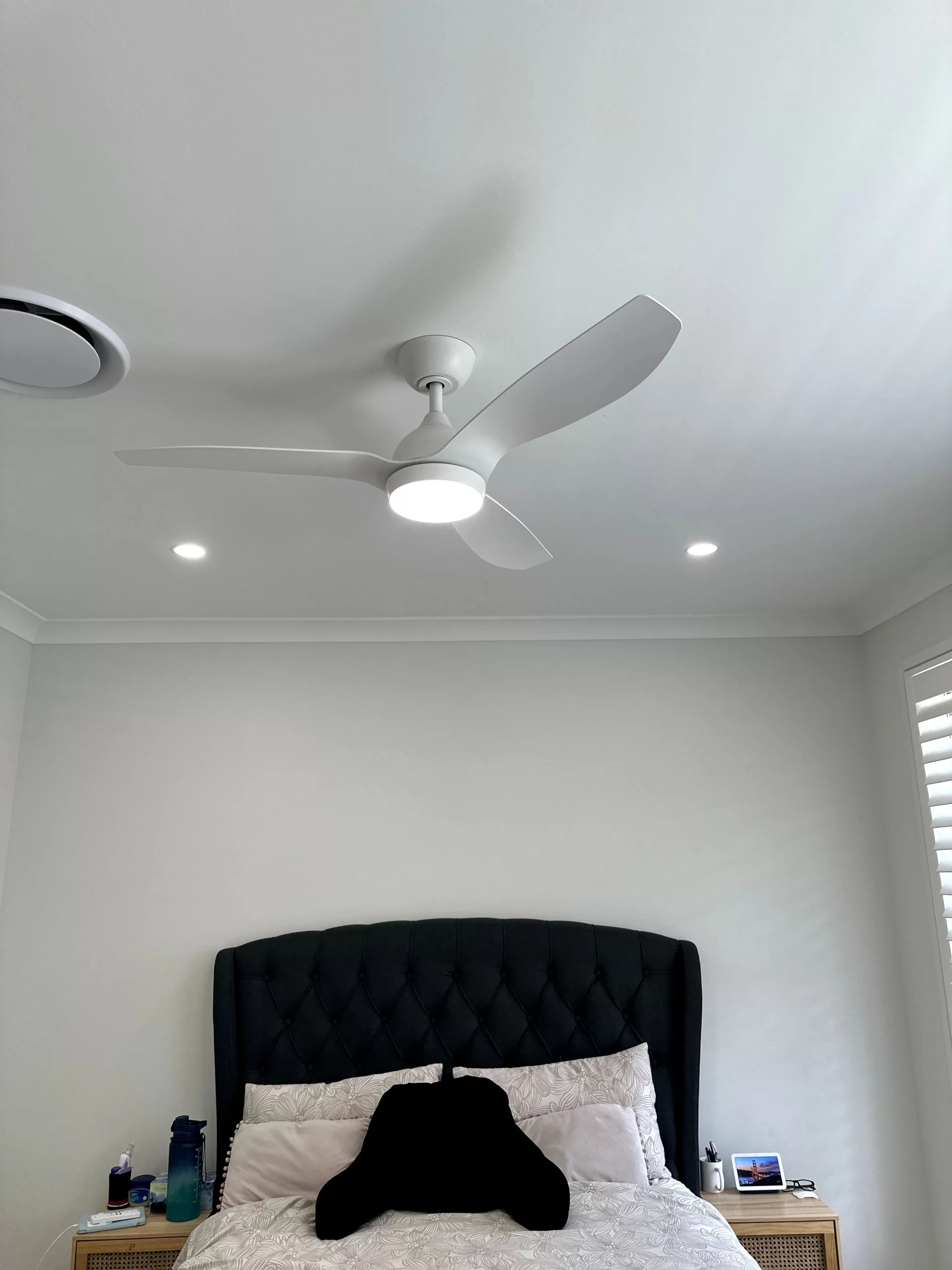 Ceiling fans must be installed correctly to prevent wobble, noise, and wiring faults. A licensed electrician installs and replaces ceiling fans in bedrooms, living areas, patios, offices, and shared commercial spaces while ensuring correct load balance and circuit protection. Every ceiling fan installation is completed by a licensed electrician who checks load balance and circuit capacity before final testing.